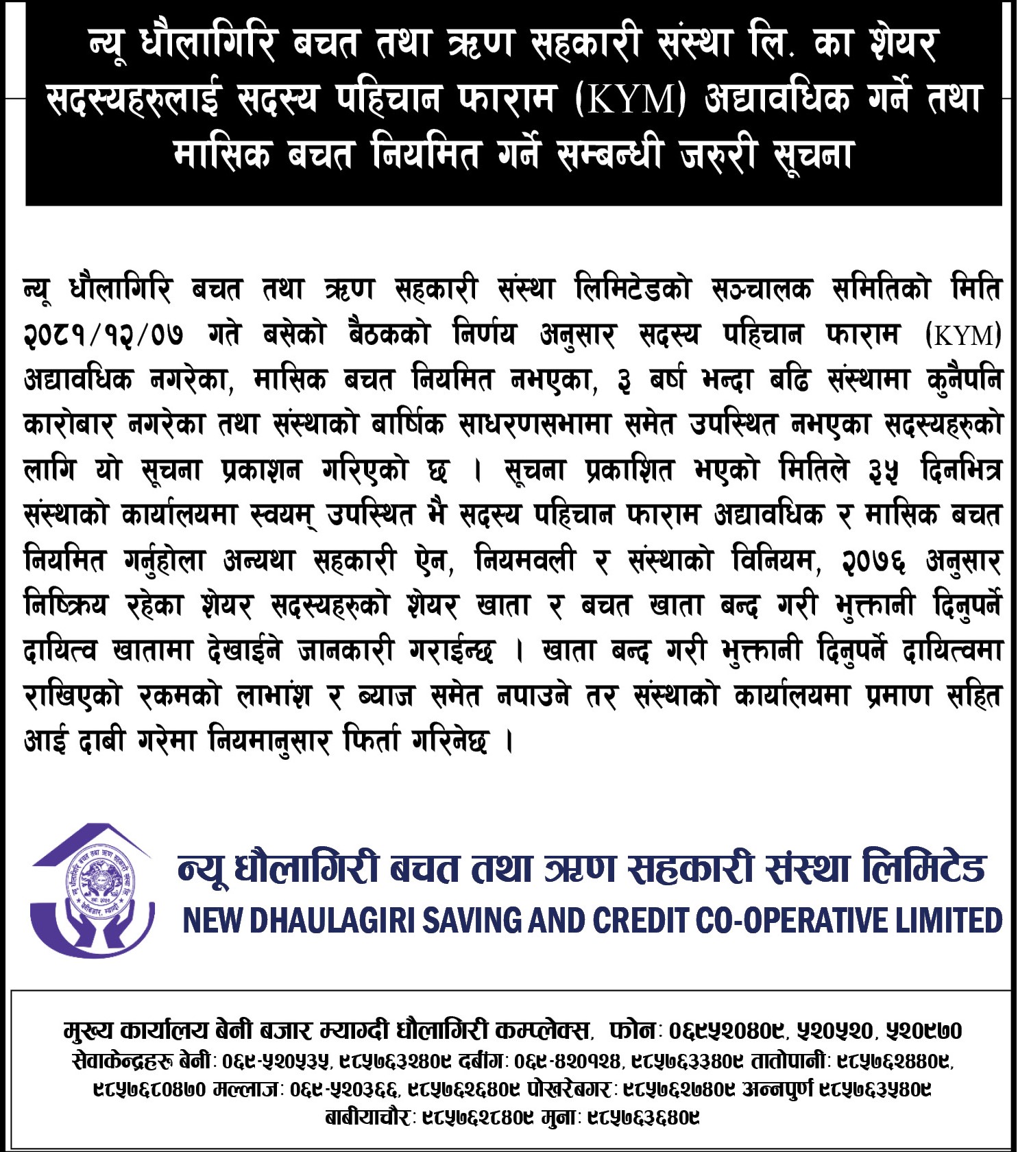 KYM अध्यावधिक गर्ने बारे प्रकाशित सुचना