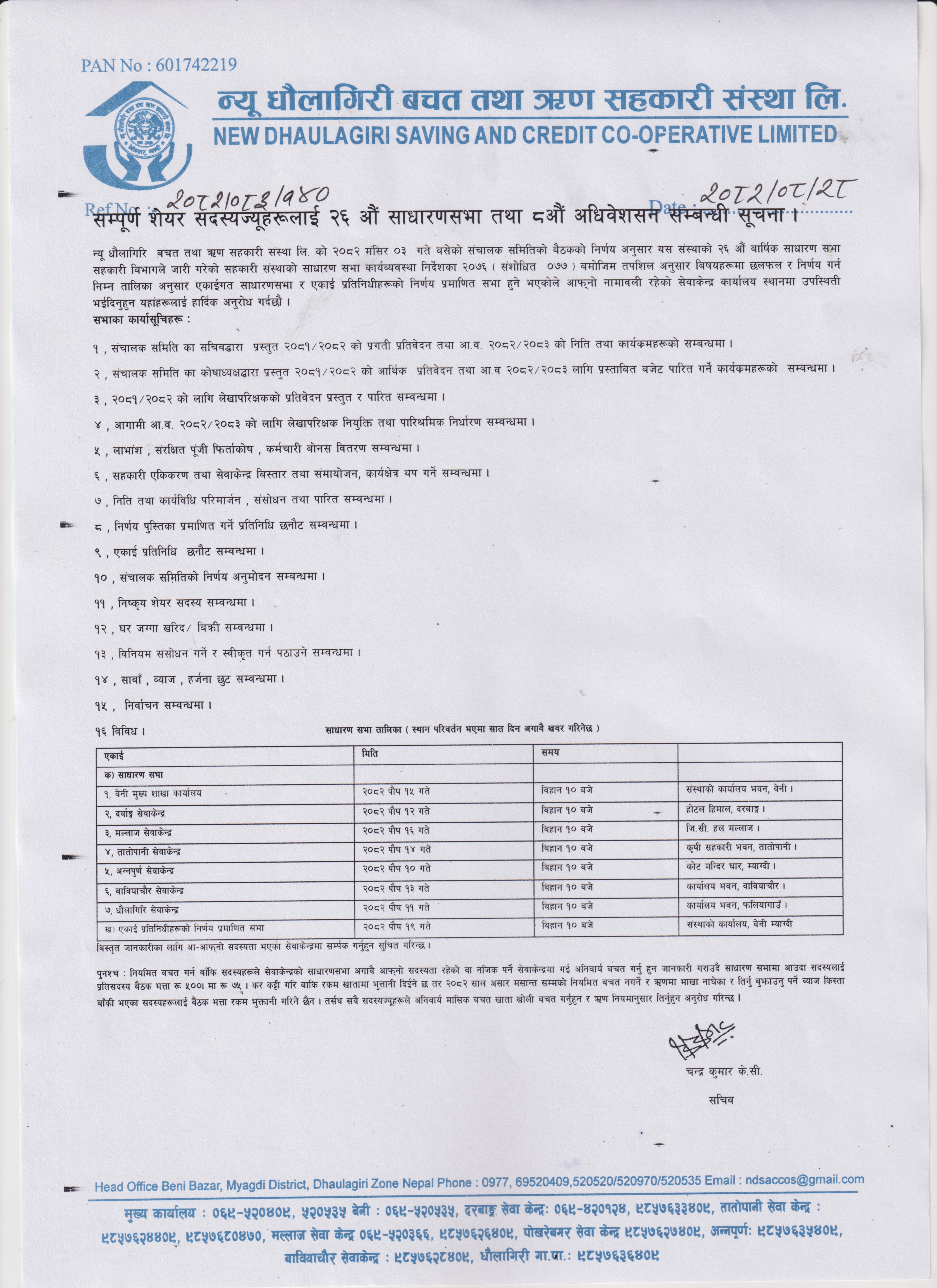 26औ बार्षिक साधारण सभा सम्बन्धि जानकारी