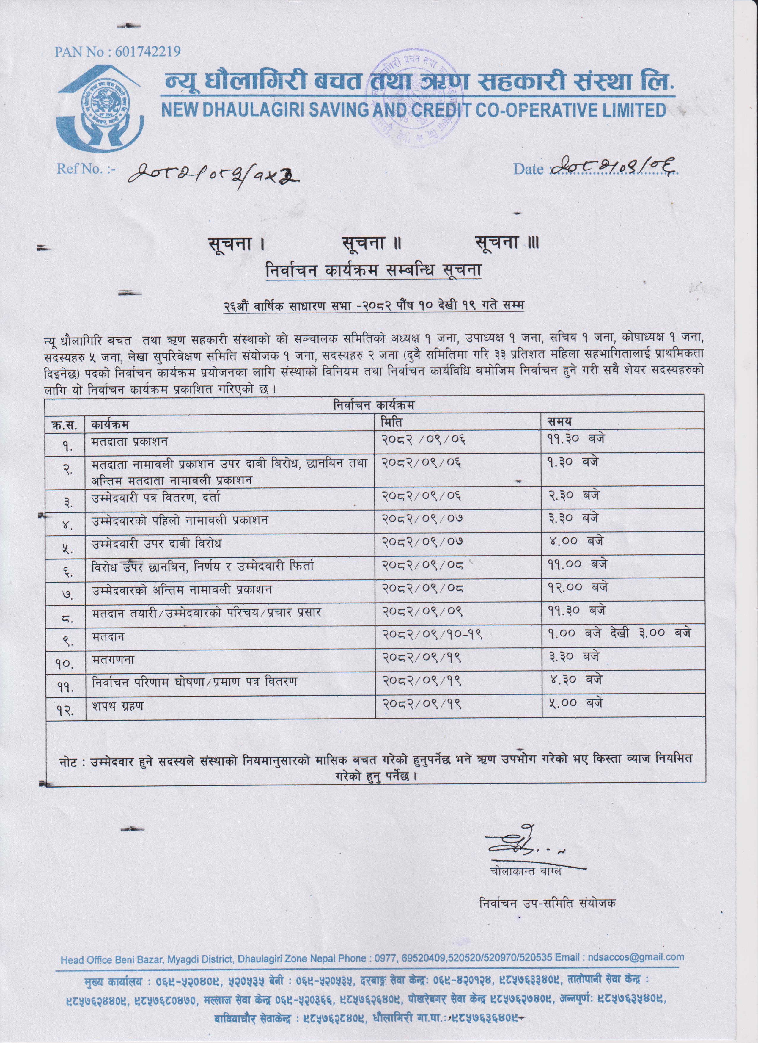 निर्वाचन कार्यक्रम सम्बन्धि सुचना